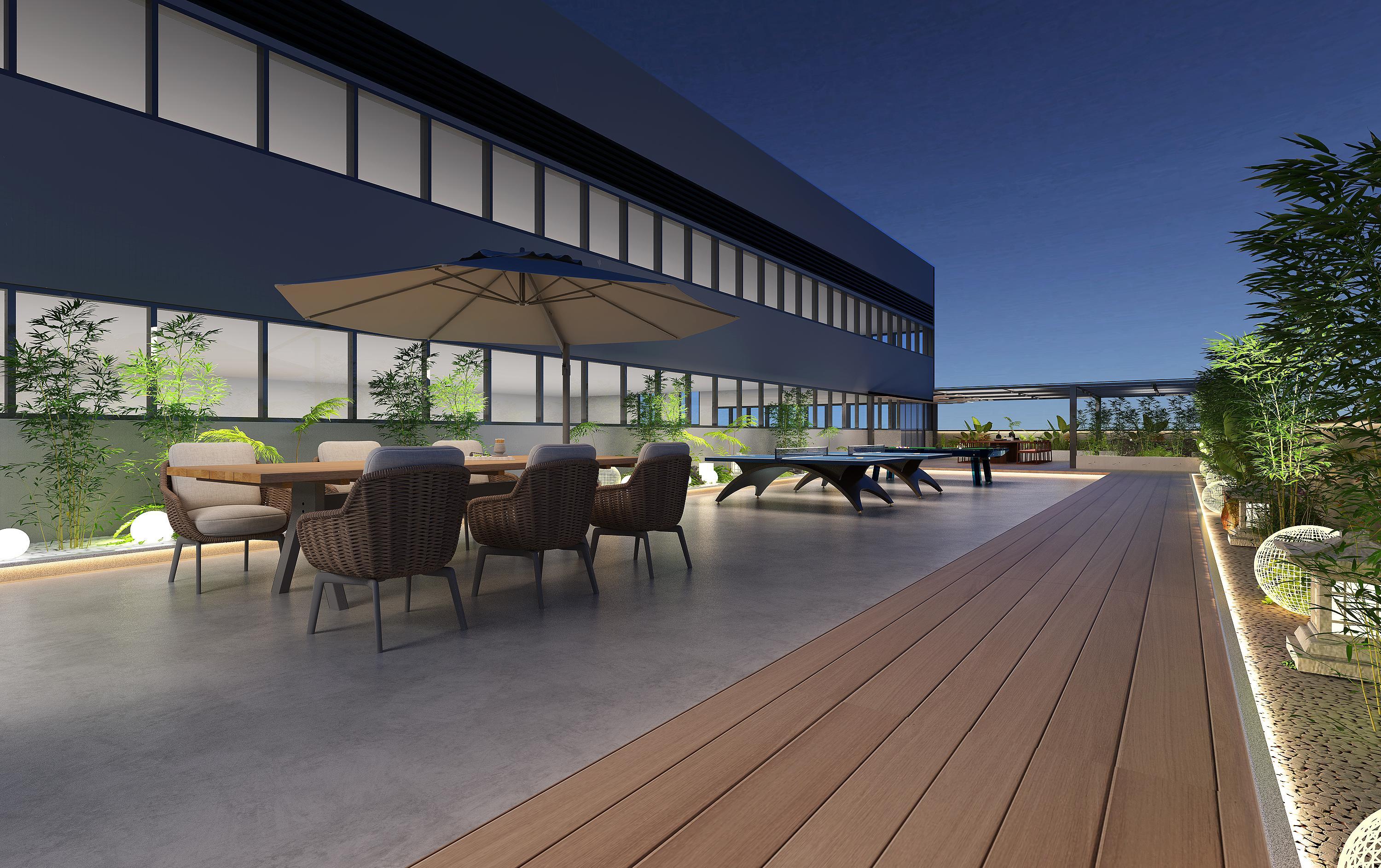 燈光設(shè)計(jì)使搭配使空間更具有氛圍感。游戲板塊增加了員工之間的互動(dòng)。露臺(tái)的設(shè)計(jì)延續(xù)了自然空間 ,讓靜止的庭園成為空間的核心精神依托,實(shí)現(xiàn)了美學(xué)與功能的完美結(jié)合,為辦公空間注入了生機(jī)和活力。