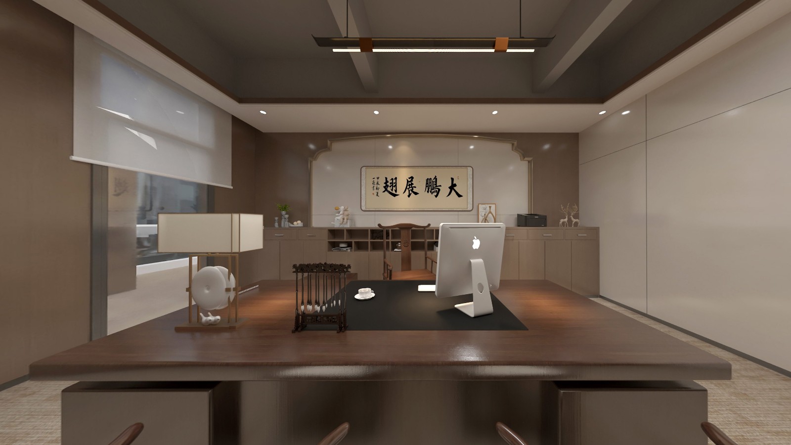 辦公區(qū)域延續(xù)采用了新中式的設(shè)計(jì)風(fēng)格,簡化了繁雜的裝飾,加入了少量的幾何元素進(jìn)行點(diǎn)綴,為古典文藝的辦公空間融入了商務(wù)元素,同時(shí)也滿足了現(xiàn)代辦公的功能性和審美需求,創(chuàng)造出一個(gè)既典雅又高效的工作環(huán)境。