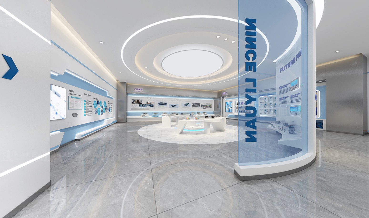 設(shè)計(jì)理念:本方案采用極簡(jiǎn)的設(shè)計(jì)手法,融合科技元素,選用現(xiàn)代新型材料和中性色調(diào),搭配動(dòng)態(tài)照明,營(yíng)造出專業(yè)活力的辦公氛圍。通透的玻璃墻設(shè)計(jì),冷色調(diào)主調(diào)搭配流暢的天花板線條,再加上獨(dú)特的燈光設(shè)計(jì),營(yíng)造出滿滿的未來感。整體的辦公空間強(qiáng)調(diào)開放性、靈活性體更彰顯出了企業(yè)的創(chuàng)新形象。