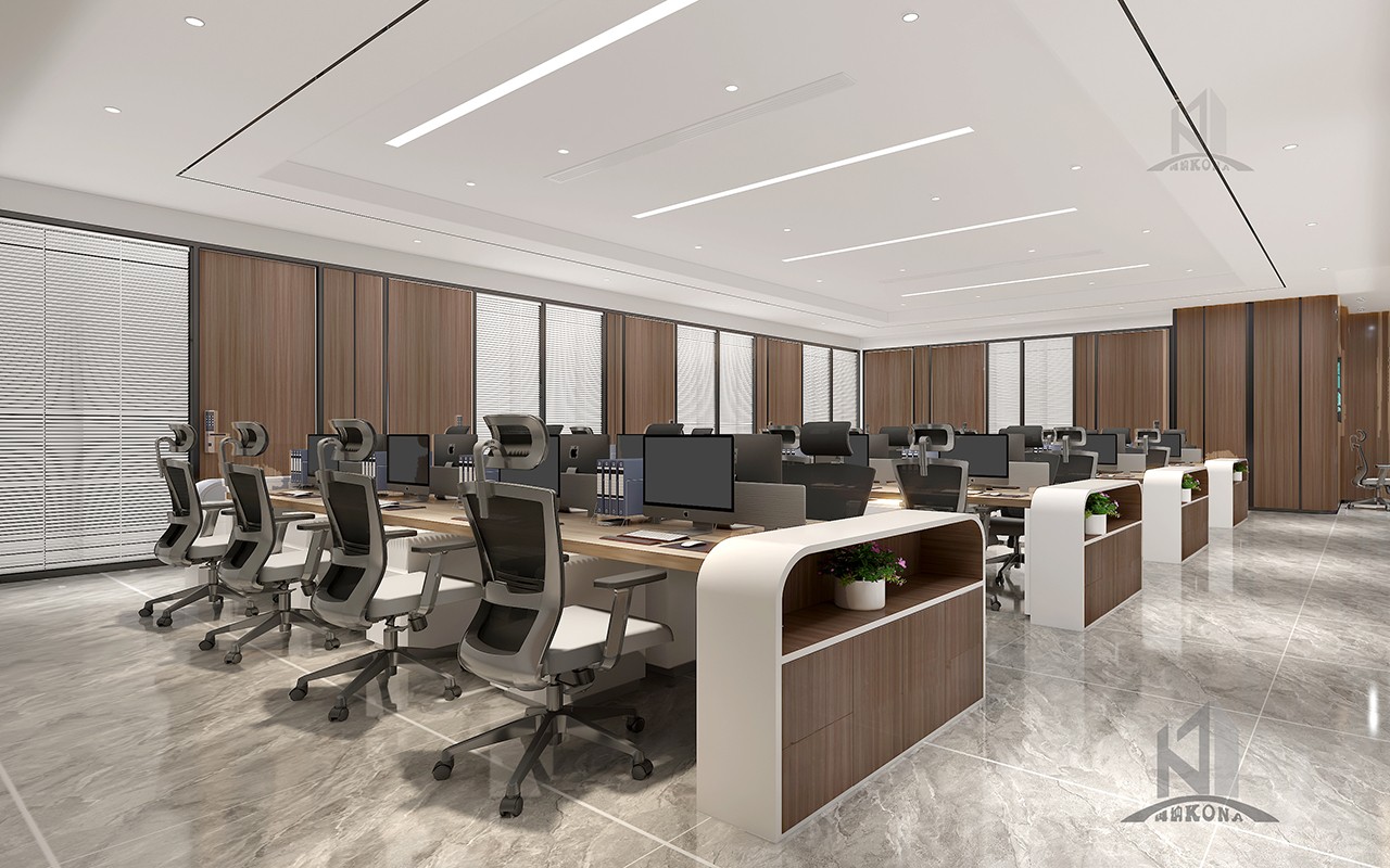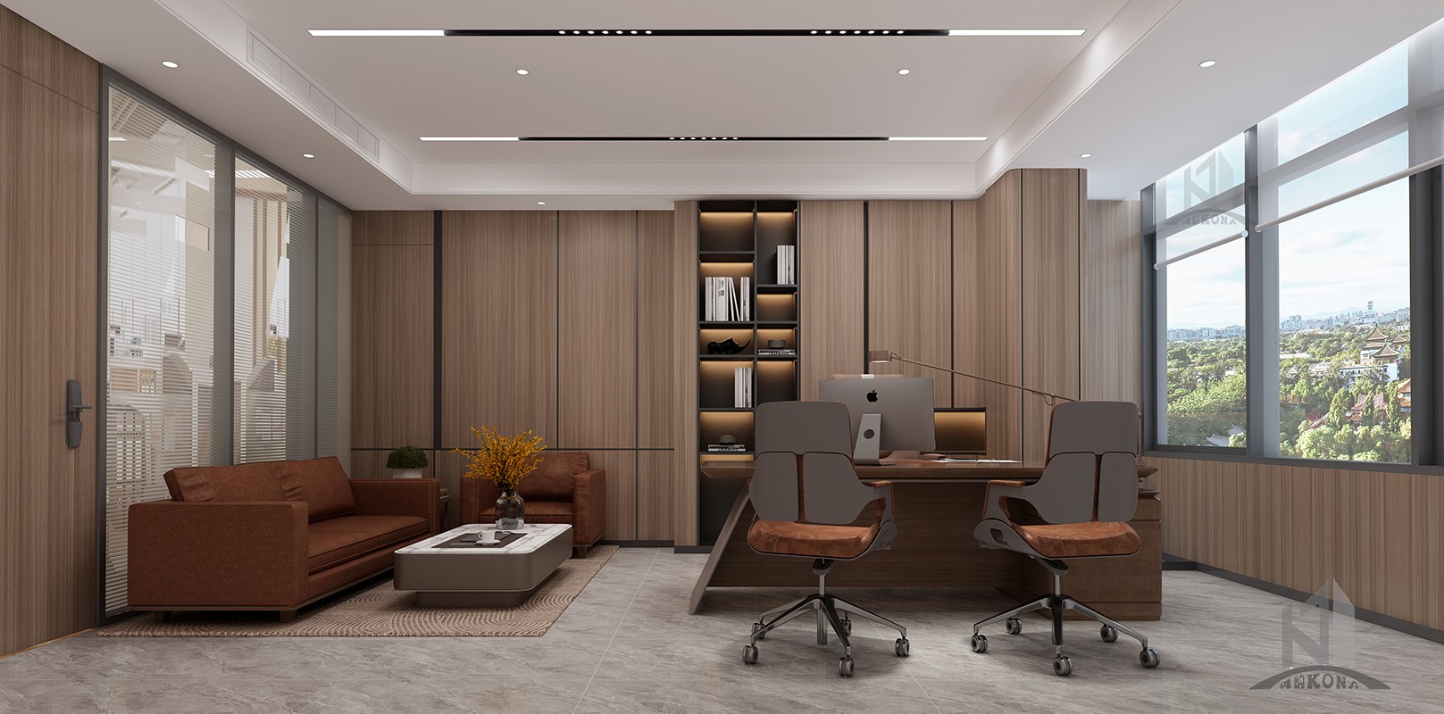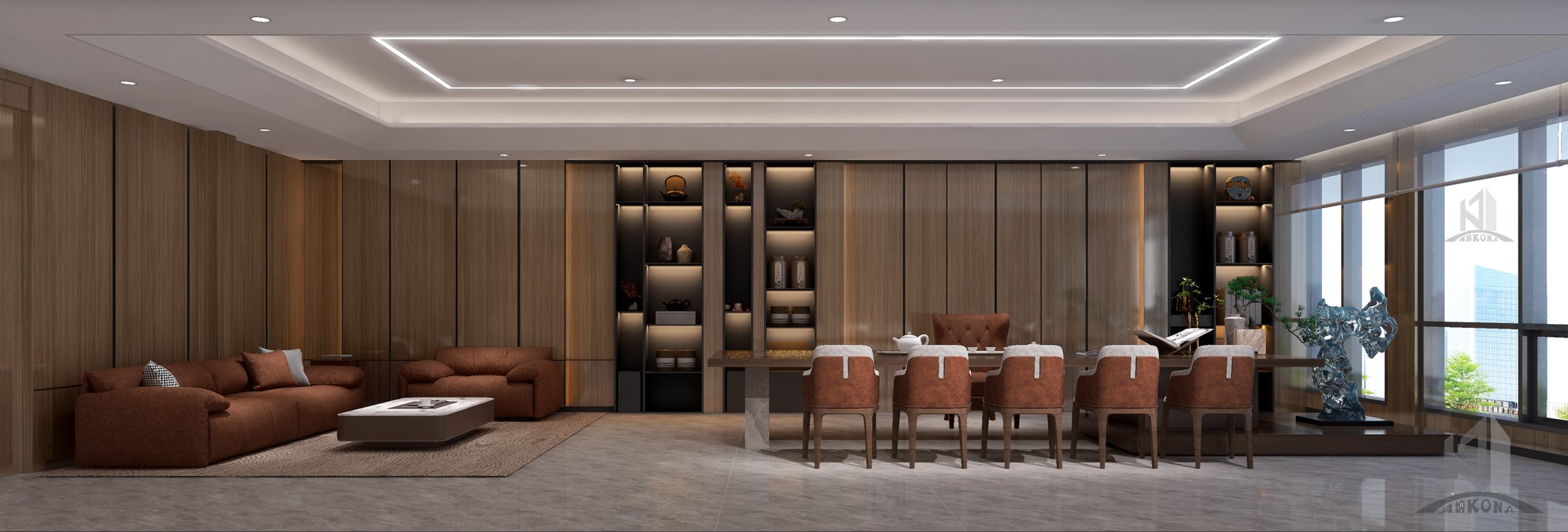 設(shè)計理念:傳統(tǒng)企業(yè)融合時代新審美辦公室設(shè)計,大塊面的灰色系大理石穿插現(xiàn)代感的線條構(gòu)建了大家對于公司的初見印象,然而這種高級的現(xiàn)代感或許會顯得冰冷。但加上了深棕色的實(shí)木就又為公司的前臺注入了儒雅、沉淀與質(zhì)樸的大氣,無論時空如何轉(zhuǎn)換,刻在中國人骨子里的中式風(fēng)骨,千百年后依然在我們的設(shè)計語言中,獵獵作響。辦公室頂面用線條強(qiáng)調(diào)虛實(shí)及縱深,以實(shí)木構(gòu)件表達(dá)建筑語言,干凈簡潔的辦公區(qū)域加上了更加濃墨重彩的傳統(tǒng)中式風(fēng)格細(xì)節(jié),于寂靜無聲中展露中國歷史人文的厚重,還有更多現(xiàn)代與傳統(tǒng)融合的可能性。會議室呈簡潔大氣,端莊肅穆的風(fēng)格,彌漫著一點(diǎn)莊重的儀式感,深棕色、灰色、白色互相融合搭配,這個色系顯得純粹而有力量,在純凈的空間里,人們更容易獲得精神的沉淀,也更容易探尋到真誠的本質(zhì)。除此之外,利用巨大的落地窗,可以減輕空間的沉悶,中和會議室的氛圍。