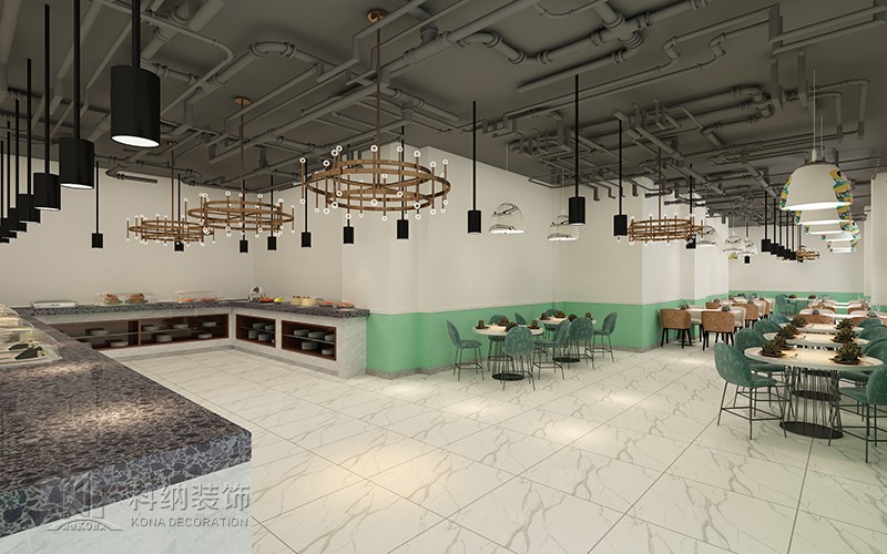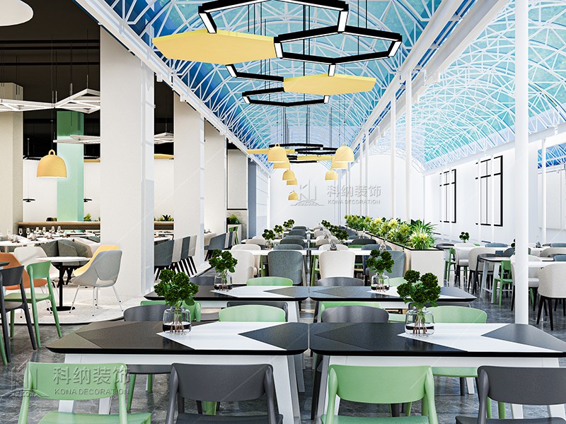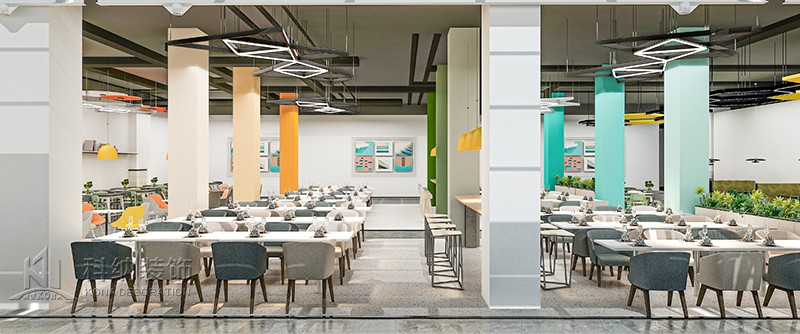 設(shè)計(jì)理念:大眾就餐區(qū)橫向舒展的開(kāi)放式桌椅布局給予一層空間通透且自由的氛圍,由此顯露出交互的趣味性與工作的靈活性。 大眾就餐區(qū)的設(shè)計(jì)以暖色調(diào)為主,以漸變式的柱子做點(diǎn)綴,為空間增加活躍氣息。 休閑區(qū)的設(shè)計(jì)采用明亮地磚做區(qū)分,然后在設(shè)計(jì)中采用綠色營(yíng)造舒適的氛圍,柔和燈光以及色彩搭配有利于緩解身心疲勞。烹飪區(qū)集中了餐品生產(chǎn)制作的主要工作,裝修應(yīng)符合單位的形象,簡(jiǎn)單大氣為主,光線(xiàn)亮麗。 加工區(qū)的主要工作內(nèi)容有:對(duì)食品進(jìn)行分揀,清洗,浸泡,蔬菜類(lèi)要按一揀、二洗、三切、四浸泡的順序操作等等。
