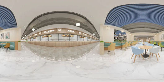 學校食堂規(guī)劃為多個餐廳單元的組合,學校就餐特點是瞬時就餐人流量很大,所以在點餐區(qū)預留了足夠的空間。