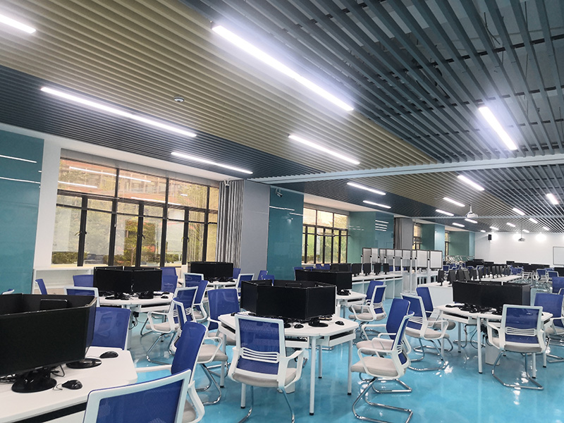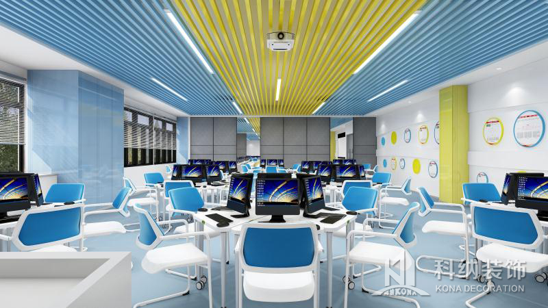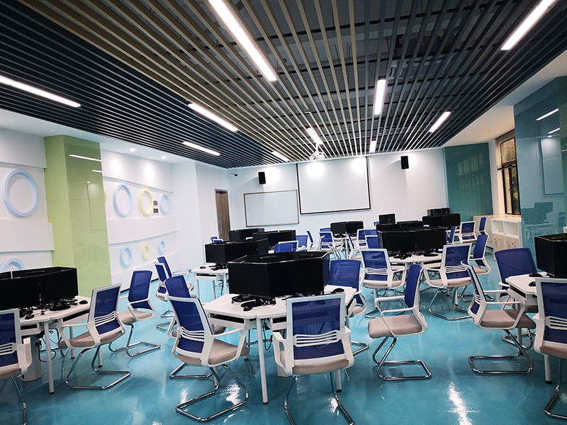 設(shè)計理念:清遠(yuǎn)校區(qū)經(jīng)營虛擬仿真中心裝修工程,教室的色調(diào)整體把控在藍(lán)色系上,寬敞的空間一眼望去變讓人感到十分的舒適,簡單明了,色彩上溫暖的淺色系與白色搭配也顯得非常的干凈,幾個不同教室用可移動屏風(fēng)隔斷,可變換多種風(fēng)格。
